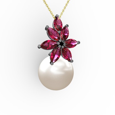 Inci ve rodolit garnet 925 ayar siyah rodyum kaplama gümüş kolye (40 cm gümüş rolo zincir)