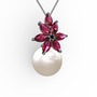 Inci ve rodolit garnet 925 ayar siyah rodyum kaplama gümüş kolye (40 cm gümüş rolo zincir)