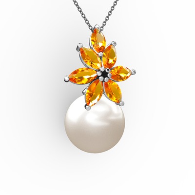 Inci ve sitrin 14 ayar beyaz altın kolye (40 cm gümüş rolo zincir)