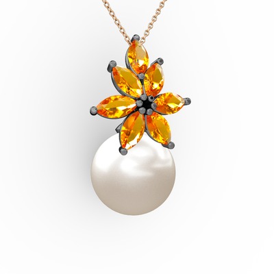 Inci ve sitrin 925 ayar siyah rodyum kaplama gümüş kolye (40 cm gümüş rolo zincir)