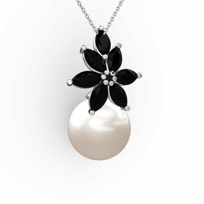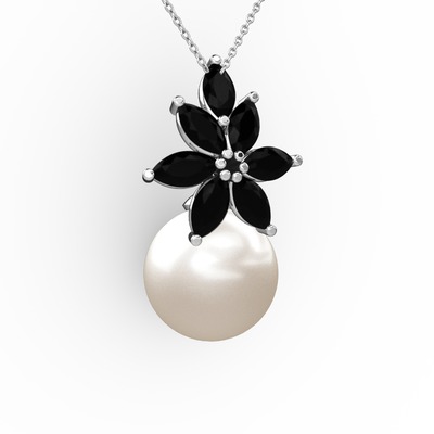 Inci ve siyah zirkon 14 ayar beyaz altın kolye (40 cm beyaz altın rolo zincir)