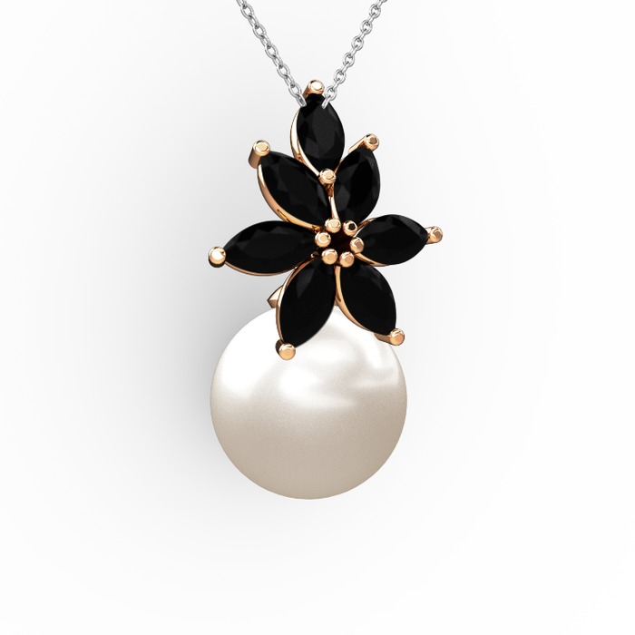 Inci ve siyah zirkon 8 ayar rose altın kolye (40 cm beyaz altın rolo zincir)