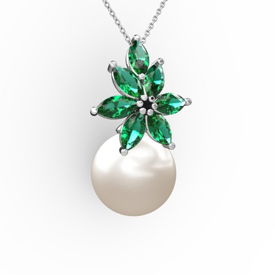 Inci ve yeşil kuvars 18 ayar beyaz altın kolye (40 cm beyaz altın rolo zincir)