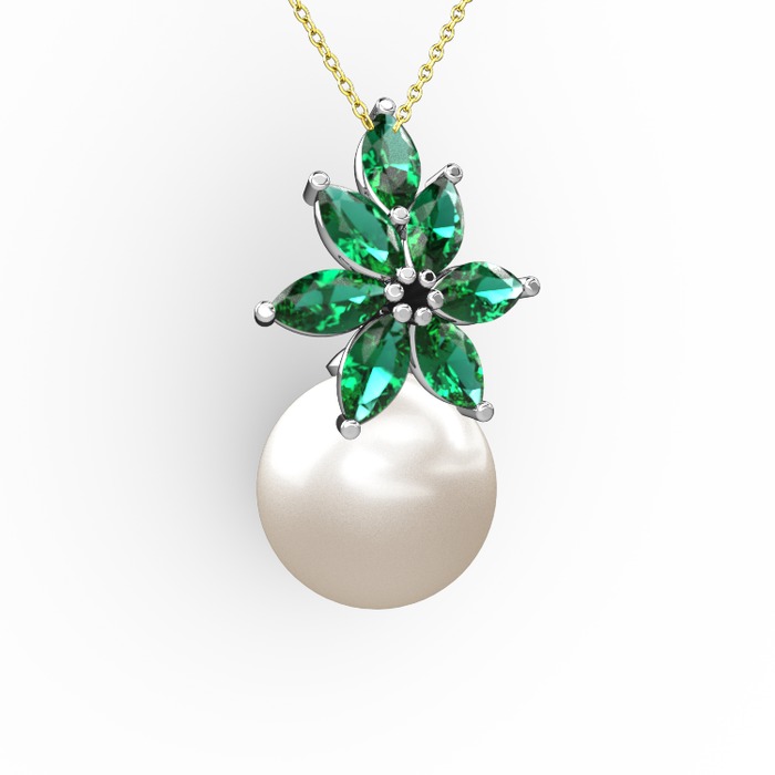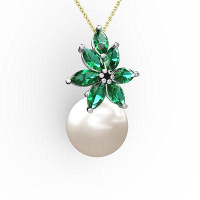 Inci ve yeşil kuvars 18 ayar beyaz altın kolye (40 cm gümüş rolo zincir)