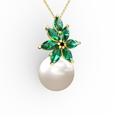 Inci ve yeşil kuvars 925 ayar altın kaplama gümüş kolye (40 cm altın rolo zincir)