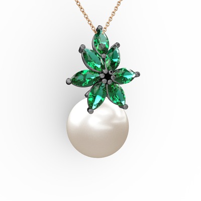 Inci ve yeşil kuvars 925 ayar siyah rodyum kaplama gümüş kolye (40 cm rose altın rolo zincir)