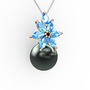 Siyah inci ve akuamarin 18 ayar rose altın kolye (40 cm beyaz altın rolo zincir)