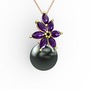 Siyah inci ve ametist 18 ayar altın kolye (40 cm rose altın rolo zincir)