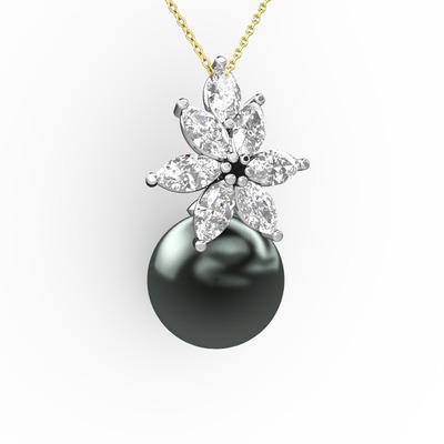 Siyah inci ve beyaz zirkon 925 ayar gümüş kolye (40 cm altın rolo zincir)