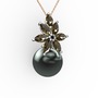 Siyah inci ve dumanlı kuvars 8 ayar beyaz altın kolye (40 cm rose altın rolo zincir)