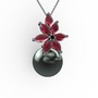 Siyah inci ve kök yakut 925 ayar siyah rodyum kaplama gümüş kolye (40 cm gümüş rolo zincir)