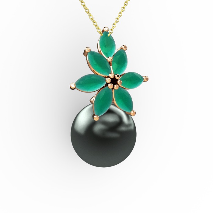 Siyah inci ve kök zümrüt 14 ayar rose altın kolye (40 cm altın rolo zincir)