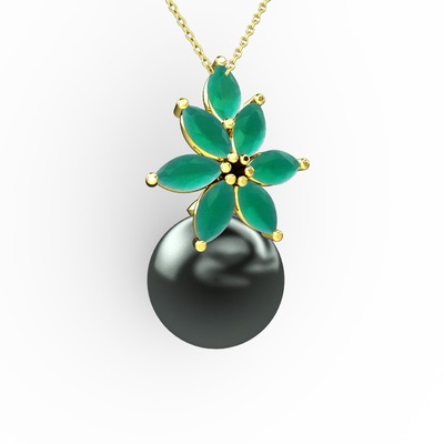 Siyah inci ve kök zümrüt 8 ayar altın kolye (40 cm altın rolo zincir)