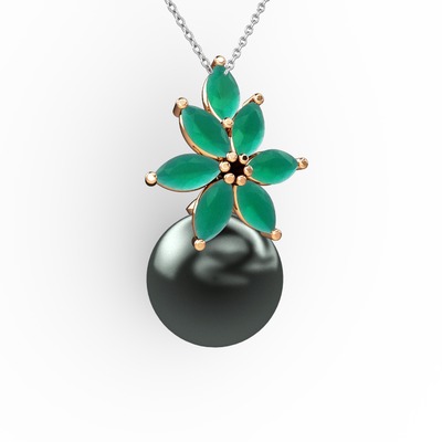 Siyah inci ve kök zümrüt 8 ayar rose altın kolye (40 cm gümüş rolo zincir)
