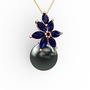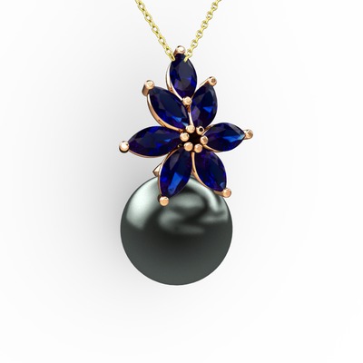 Siyah inci ve lab safir 8 ayar rose altın kolye (40 cm altın rolo zincir)