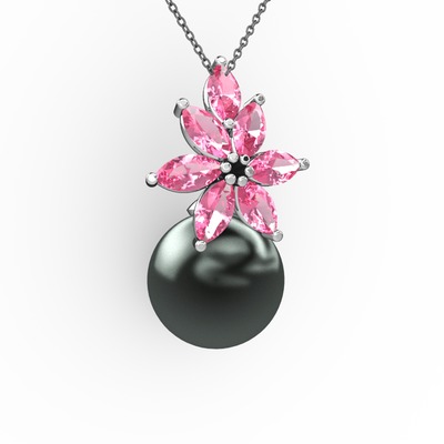 Siyah inci ve pembe kuvars 925 ayar gümüş kolye (40 cm gümüş rolo zincir)