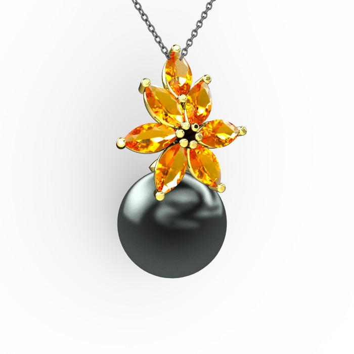Siyah inci ve sitrin 18 ayar altın kolye (40 cm gümüş rolo zincir)