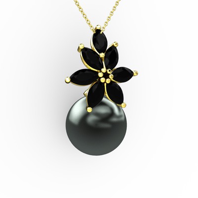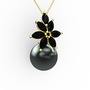 Siyah inci ve siyah zirkon 18 ayar altın kolye (40 cm gümüş rolo zincir)