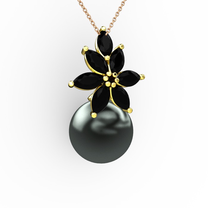Siyah inci ve siyah zirkon 925 ayar altın kaplama gümüş kolye (40 cm rose altın rolo zincir)