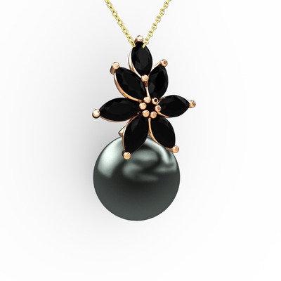 Siyah inci ve siyah zirkon 925 ayar rose altın kaplama gümüş kolye (40 cm gümüş rolo zincir)