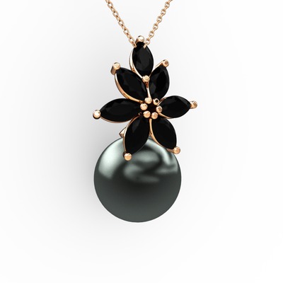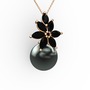 Siyah inci ve siyah zirkon 925 ayar rose altın kaplama gümüş kolye (40 cm rose altın rolo zincir)