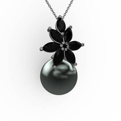 Siyah inci ve siyah zirkon 925 ayar siyah rodyum kaplama gümüş kolye (40 cm gümüş rolo zincir)