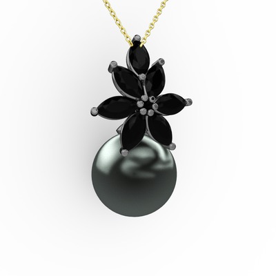 Siyah inci ve siyah zirkon 925 ayar siyah rodyum kaplama gümüş kolye (40 cm gümüş rolo zincir)
