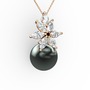 Siyah inci ve swarovski 14 ayar rose altın kolye (40 cm gümüş rolo zincir)