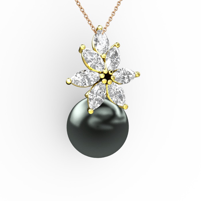Siyah inci ve swarovski 18 ayar altın kolye (40 cm gümüş rolo zincir)
