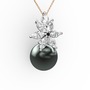 Siyah inci ve swarovski 18 ayar beyaz altın kolye (40 cm rose altın rolo zincir)