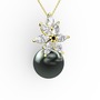 Siyah inci ve swarovski 925 ayar altın kaplama gümüş kolye (40 cm altın rolo zincir)