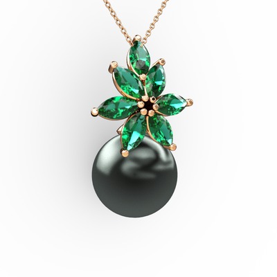 Siyah inci ve yeşil kuvars 18 ayar rose altın kolye (40 cm rose altın rolo zincir)