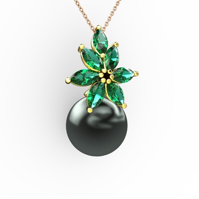 Siyah inci ve yeşil kuvars 8 ayar altın kolye (40 cm rose altın rolo zincir)