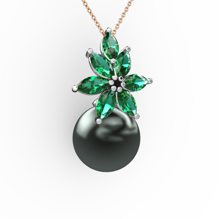 Siyah inci ve yeşil kuvars 925 ayar gümüş kolye (40 cm rose altın rolo zincir)