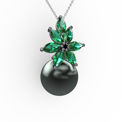 Siyah inci ve yeşil kuvars 925 ayar siyah rodyum kaplama gümüş kolye (40 cm gümüş rolo zincir)