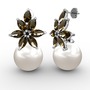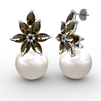 Inci ve dumanlı kuvars 14 ayar beyaz altın küpe