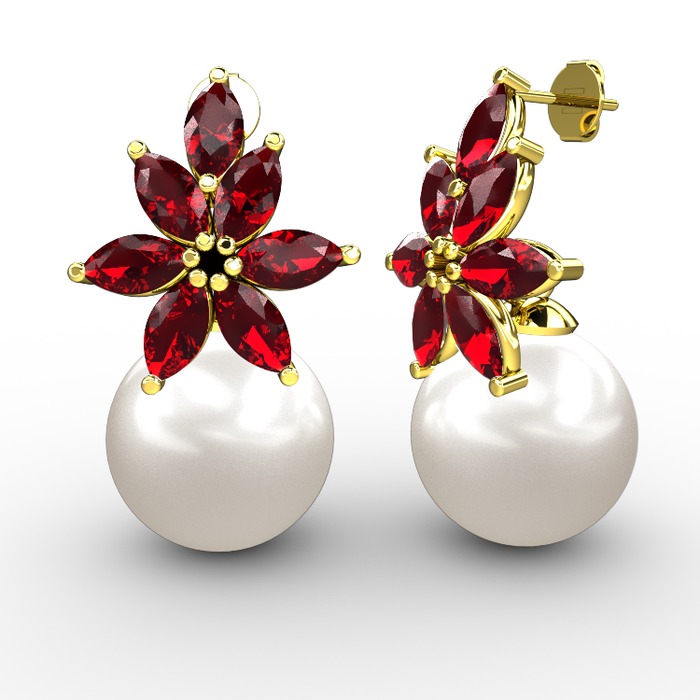 Inci ve garnet 925 ayar altın kaplama gümüş küpe
