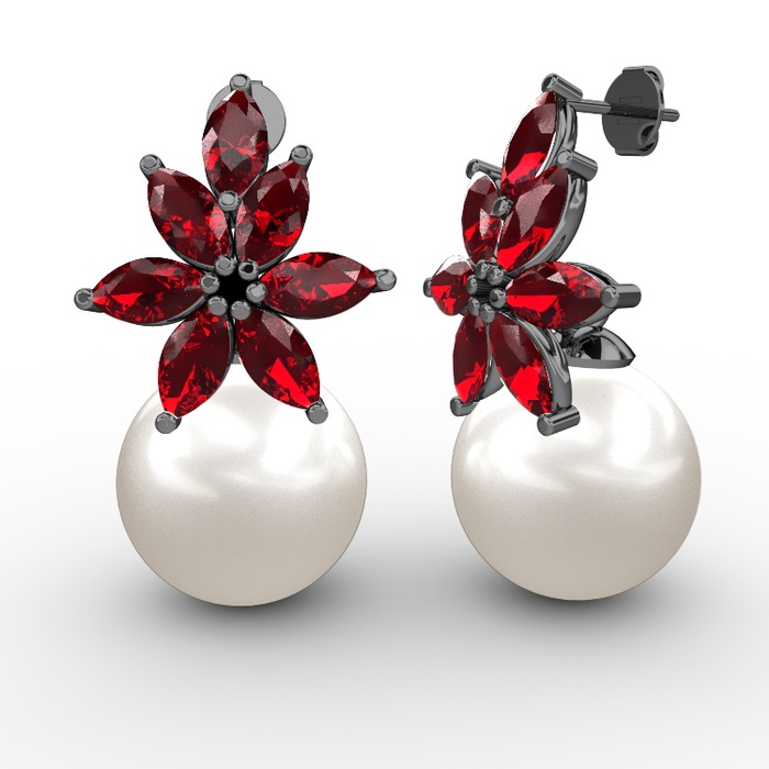 Inci ve garnet 925 ayar siyah rodyum kaplama gümüş küpe