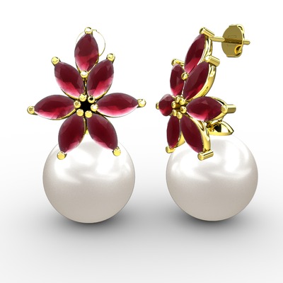 Inci ve kök yakut 8 ayar altın küpe