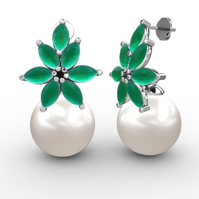 Inci ve kök zümrüt 18 ayar beyaz altın küpe