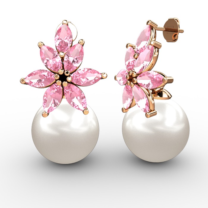 Inci ve pembe kuvars 18 ayar rose altın küpe