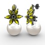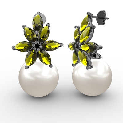 Inci ve peridot 925 ayar siyah rodyum kaplama gümüş küpe