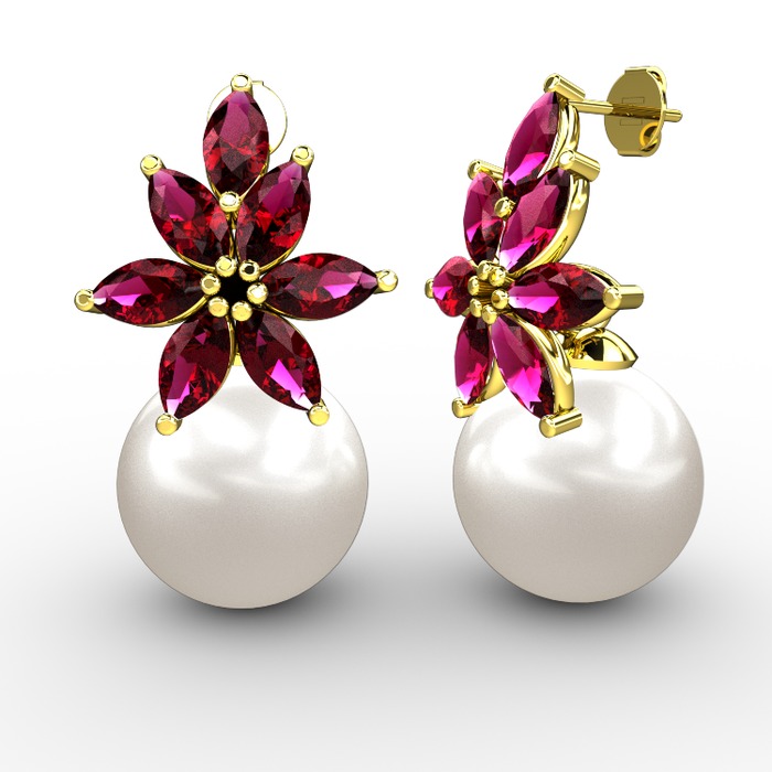 Inci ve rodolit garnet 18 ayar altın küpe