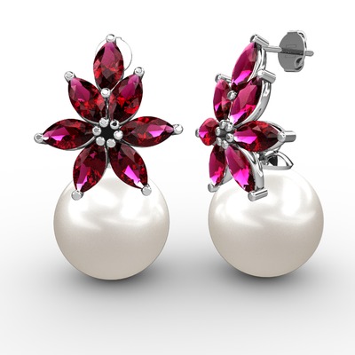 Inci ve rodolit garnet 925 ayar gümüş küpe