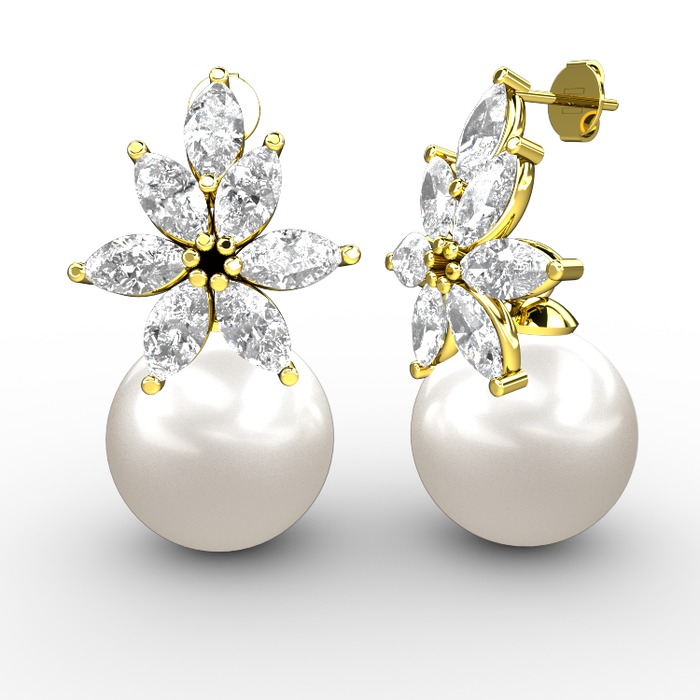 Inci ve swarovski 925 ayar altın kaplama gümüş küpe