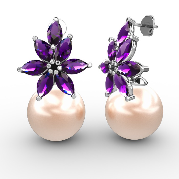 Pembe inci ve ametist 8 ayar beyaz altın küpe