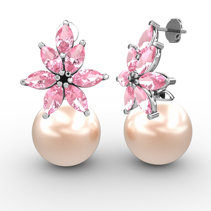 Pembe inci ve pembe kuvars 14 ayar beyaz altın küpe