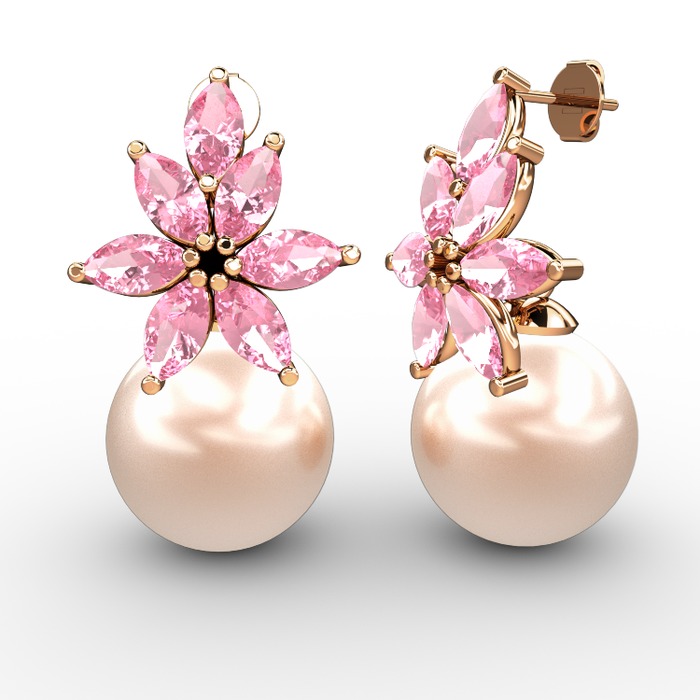 Pembe inci ve pembe kuvars 8 ayar rose altın küpe