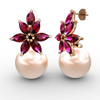 Pembe inci ve rodolit garnet 18 ayar rose altın küpe