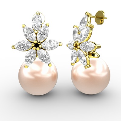 Pembe inci ve swarovski 925 ayar altın kaplama gümüş küpe